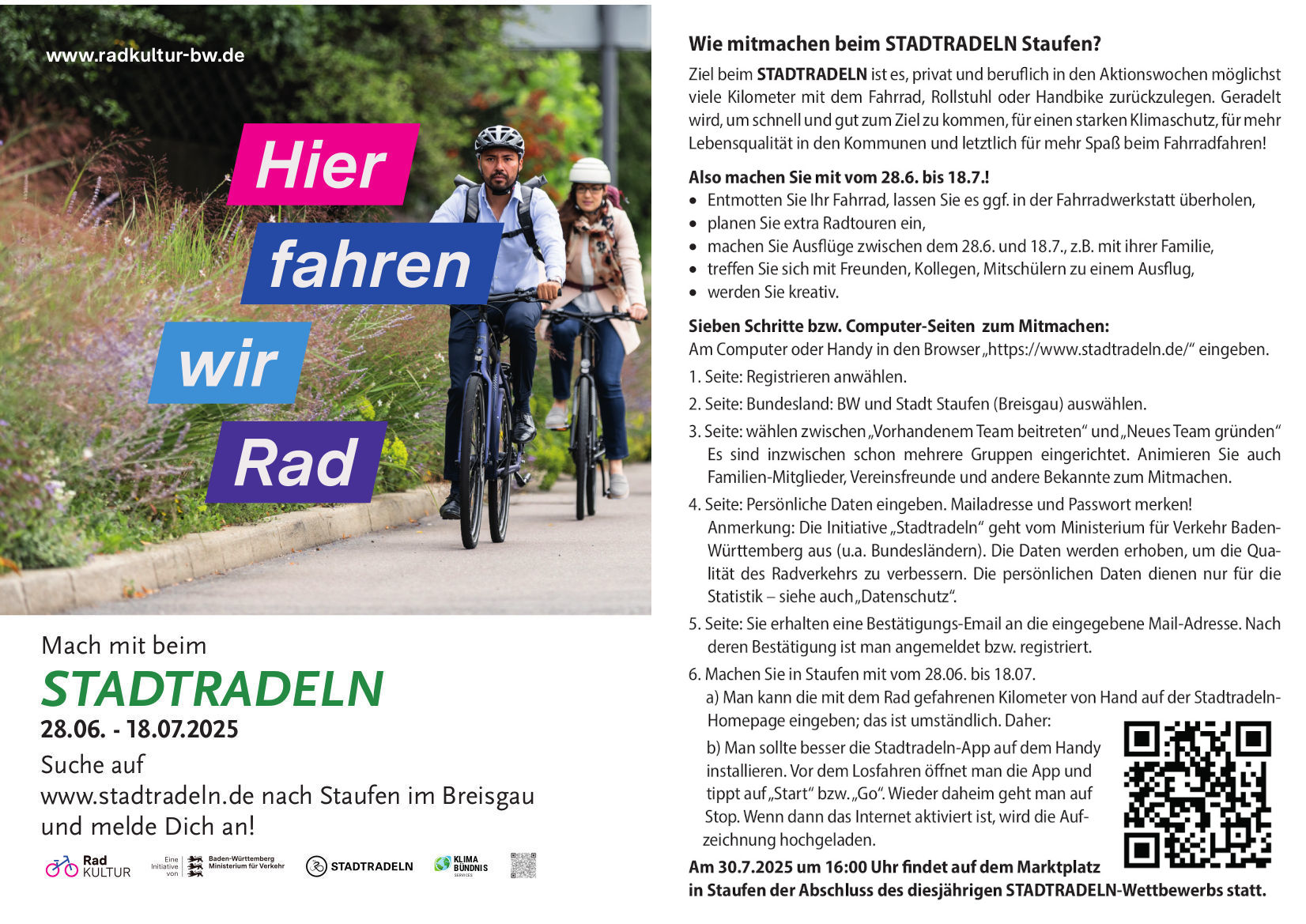 Wir nehmen wieder teil am Stadtradeln 2025 vom 28.6. bis 18.7.. Es gibt schon einige Gruppen in Grunern.