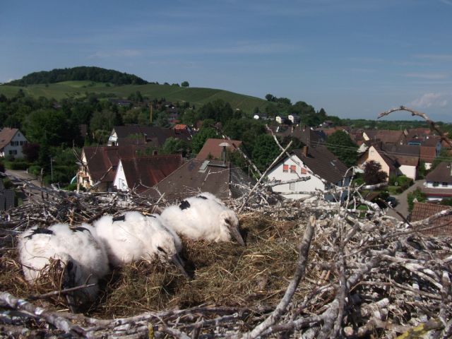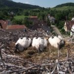Im letzten Jahr hielten die Jungen lange auf dem Horst aus. Heute morgen ist schon mal ein kleiner Jugendtrupp vorbei geflogen so nach dem Motto: „He schließt euch uns an, wir rocken die Gegend!“ Dauert noch etwas dann sind die Jungen weg. Ende Juli! Zwischen August und September folgen die Alten.