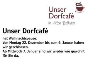 Unser Dorfcafé macht eine kurze Weihnachtspause