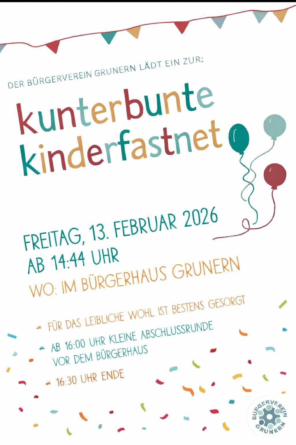 alle, kultur Kinderfasnet 2026 30. Januar 2026 / Am Freitag, den 13.02. nachmittags findet wieder die Kinderfasnet in Grunern statt.